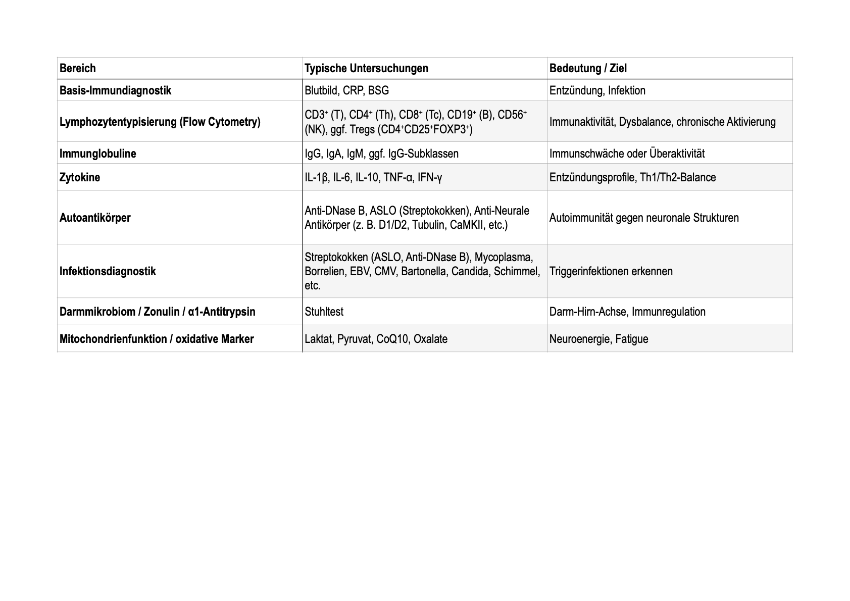 Bei PANS/PANDAS kann diese Untersuchung Hinweise auf eine Immunfehlregulation oder Autoimmunaktivität geben, z. B.: